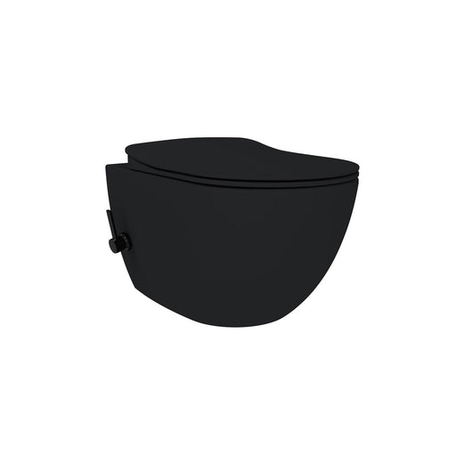 De RimOff ophang-wc in mat zwart biedt een strak, modern ontwerp met een geïntegreerde bidetfunctie voor warm en koud water. Het randloze spoelsyst...